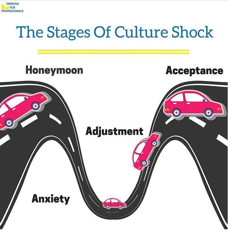 We commonly think about culture shock in four phases, and these phases will last different lengths of time and manifest themselves a little differently in every person.